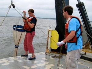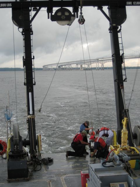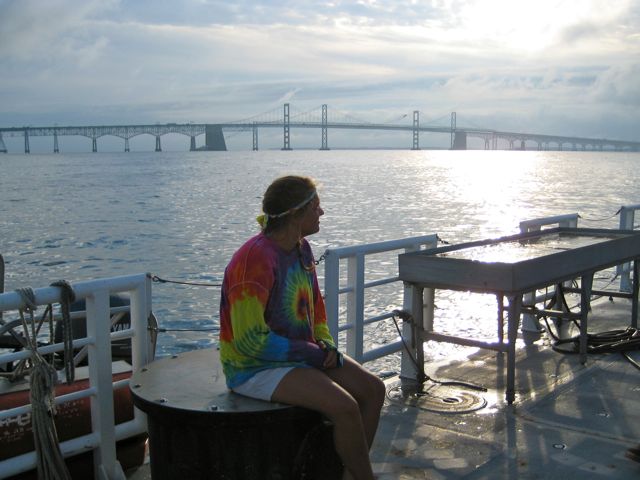 We arrived at Station 858 this morning – a classic station on the east side of the channel just south of the Chesapeake Bay bridge. Generations of scientists have occupied this beautiful site for sampling surveys and experiments. You can almost smell the history.